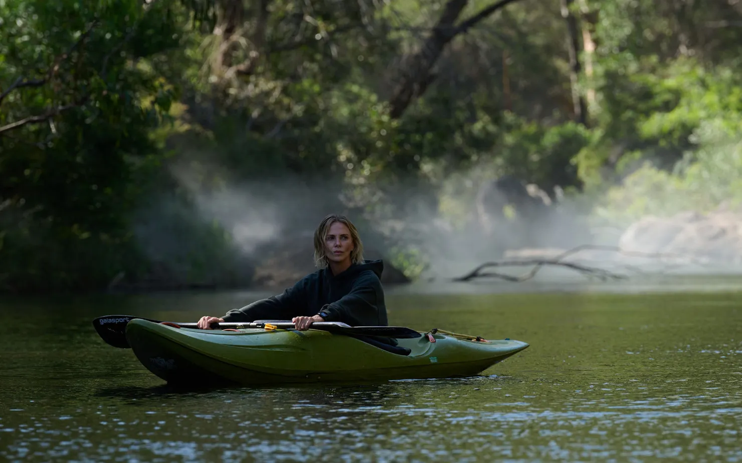 Charlize Theron paddles through the wild Australian backcountry in a new still from Apex via USA Today… but it’s not just the rapids that are deadly. A merciless serial killer is hunting her.